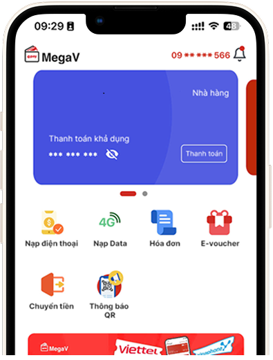 Mua voucher phiếu ăn qua ứng dụng MegaV và thanh toán tại các nhà ăn hợp tác với MegaV
