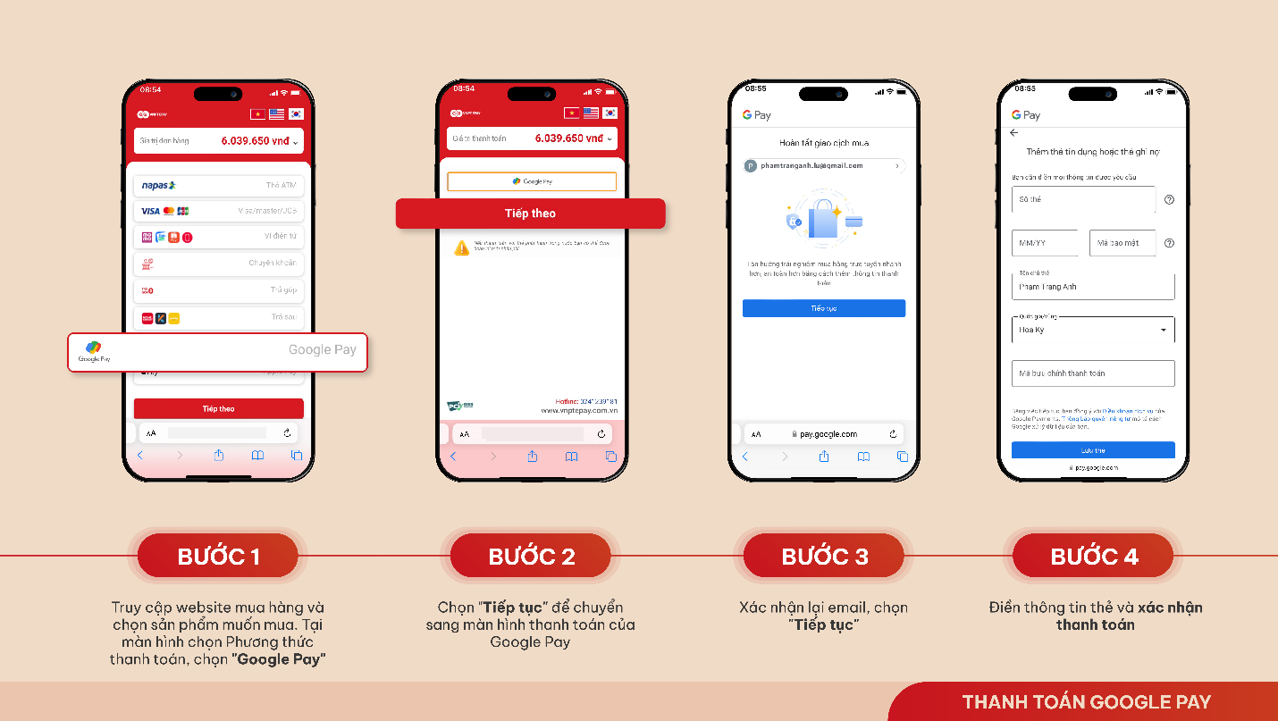 Là phương thức thanh toán bằng thẻ đã lưu trên các Ví Google (hỗ trợ cả hệ điều hành iOS và Android) và Apple (hỗ trợ cho hệ điều hành iOS) của chính bạn, bạn có thể thoải mái mua sắm và thanh toán một cách dễ dàng chỉ với 1 thao tác chọn thẻ đã lưu trên Ví của mình thay vì cần phải nhớ thông tin thẻ và nhập hàng loạt các thông tin cần thiết như số thẻ, số CVV… như trước đây. Và quan trọng hơn nữa, với chứng chỉ bảo mật PCIDSS Level 1 (Chứng nhận bảo mật cao nhất) bạn hoàn toàn yên tâm thông tin thẻ của bạn luôn được giữ bảo mật tuyệt đối.